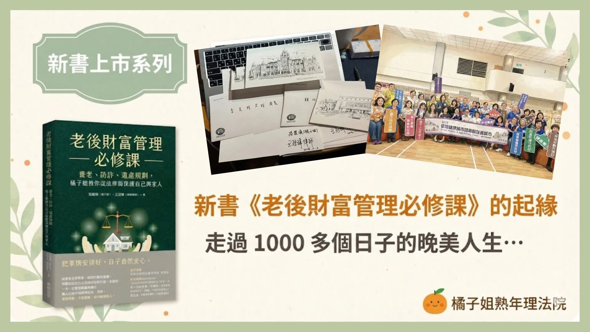 橘子姐和律師瑋哥的新書《老後財富管理必修課》暖心上市!攜手王冠瑋律師破解熟齡法律、退休財產規劃與防詐遺囑重點。教您提早佈局,守護資產,預約安心的晚美人生。