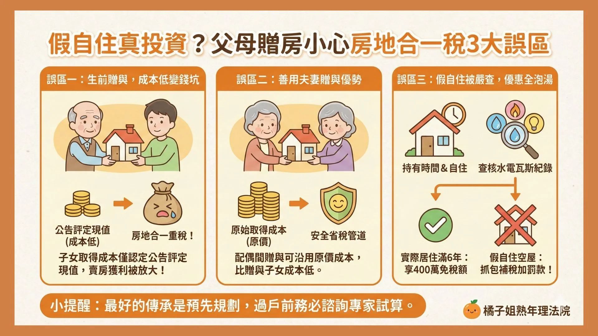 【高齡金融法律】假自住真投資?父母贈房產破解房地合一稅 2.0,守護家族資產的最後一哩路