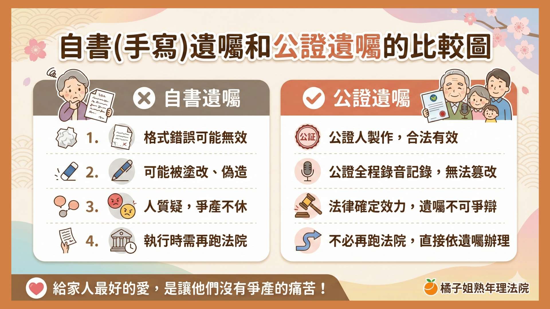 - 預防漏洞:避免你寫出「剝奪繼承權」等法律上無效的氣話。